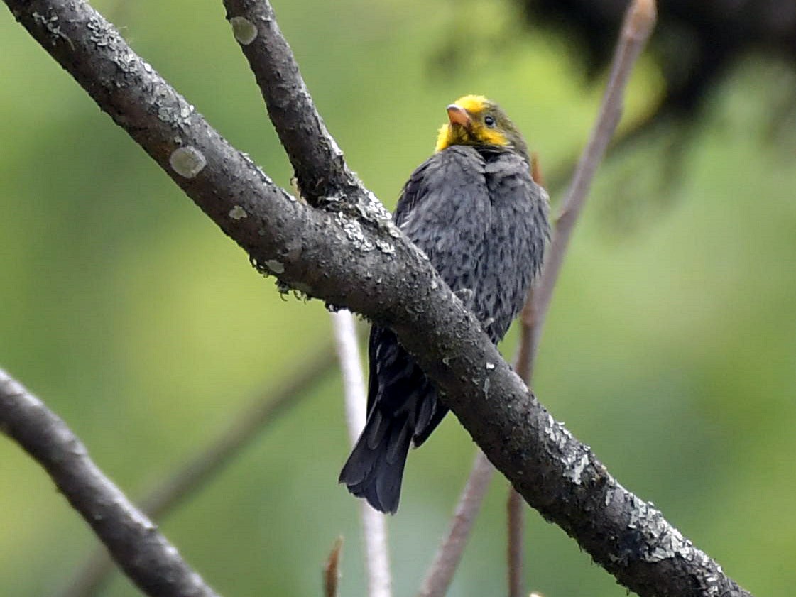 The yellow-rumped honeyguide (Indicator xanthonotus) is a sparrow-sized bird in the honeyguide family that is found in Asia, mainly in montane forests along the Himalayas. They are very finch-like but the feet are strong and zygodactyl, with two toes facing forward and two backward. They perch on honeycombs and feed on wax. Males tend to be territorial and stay near honeycombs while females and juveniles forage widely. They are brood parasites, laying their eggs in the nests of tree-hole breeders, possibly barbets.